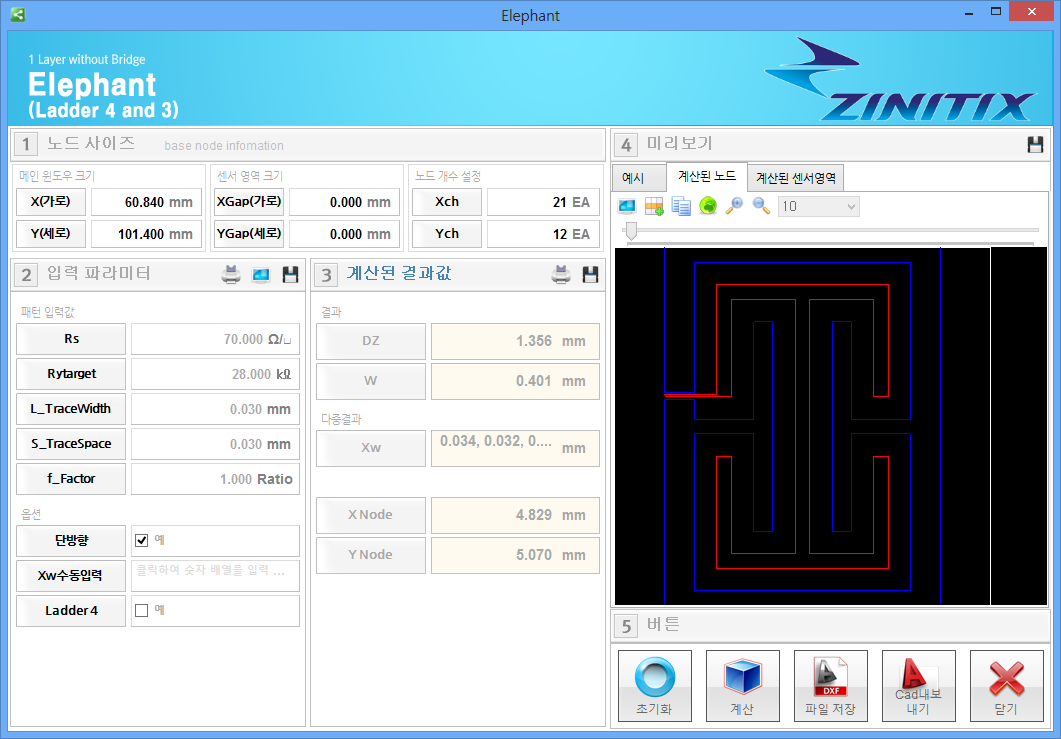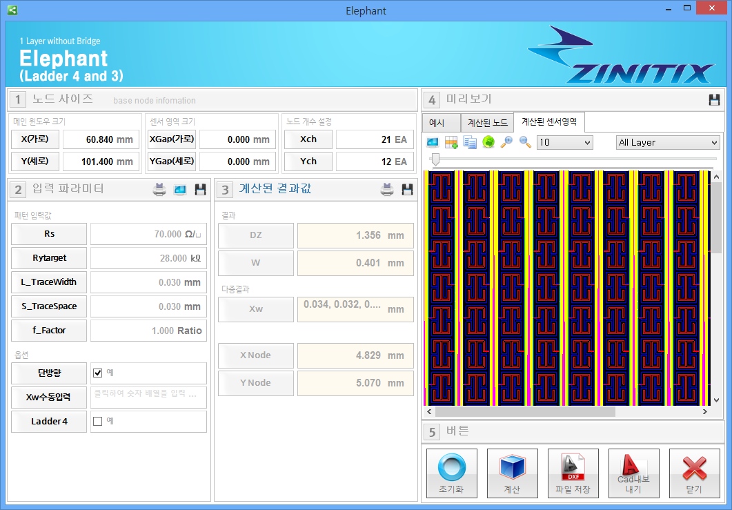 1개의 노드에 해당하는 패턴을 작화한 미리 보기 화면입니다. 센서영역 전체에 해당하는 패턴을 Drawing 한 미리 보기 화면입니다.
